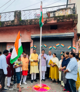 कार्यक्रम में ध्वजारोहण माननीय श्री विशाल गुप्ता जी भाजपा,श्री पंकज शर्मा जी अंबेडकर मंडल अध्यक्ष भाजपा व पार्षद श्रीमती अनिता गर्ग जी द्वारा किया गयाम।